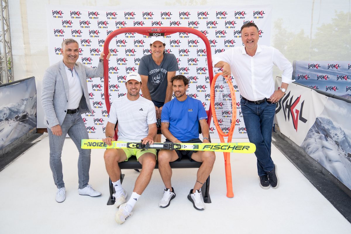 Ischgl Tennis Trophy OBS_20250612_OBS0043 Günther Zangerl (Silvrettaseilbahn) und Edwin Weindorfer (emotion sports) kündigen im Beisein der Tennisprofis Mischa Zverev, Tommy Haas, Fabio Fognini die Ischgl Trophy an. © TVB Paznaun-Ischgl
