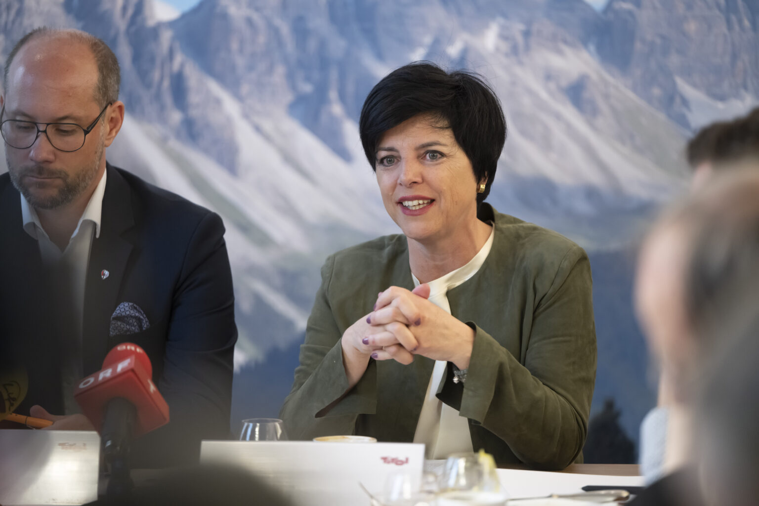TirolWerbung Winter24/25 Gerber Seiler Tourismuslandesrat Mario Gerber und Karin Seiler, Geschäftsführerin Tirol Werbung, präsentieren die vorläufige Bilanz der Tiroler Wintersaison 2024/25. © Tirol Werbung/Gerhard Berger